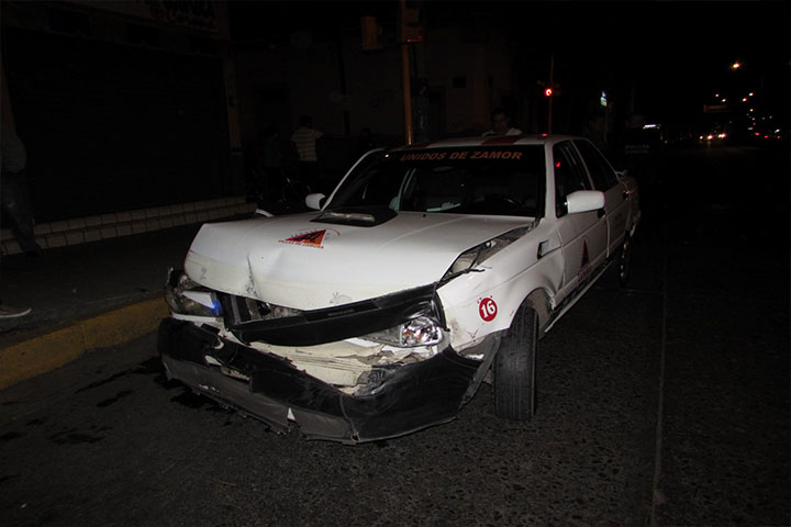 La falta de precaución de los conductores de un taxi y un vehículo particular dejó como resultado, un fuerte choque con múltiples daños materiales por varios miles de pesos y un gran susto entre los pasajeros de ambas unidades, lo anterior provocó la movilización de los cuerpos de auxilio, así como de elementos de Tránsito Municipal, quienes aseguraron ambas unidades.