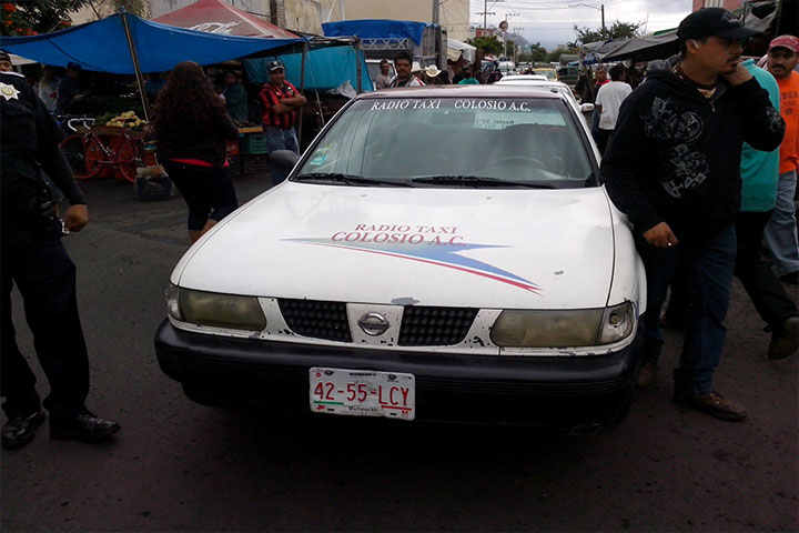 Un joven ciclista, resultó con diversos golpes en su cuerpo al impactarse contra una unidad de alquiler, cuyo conductor espero en el lugar a que arribarán las autoritarios policiacas.