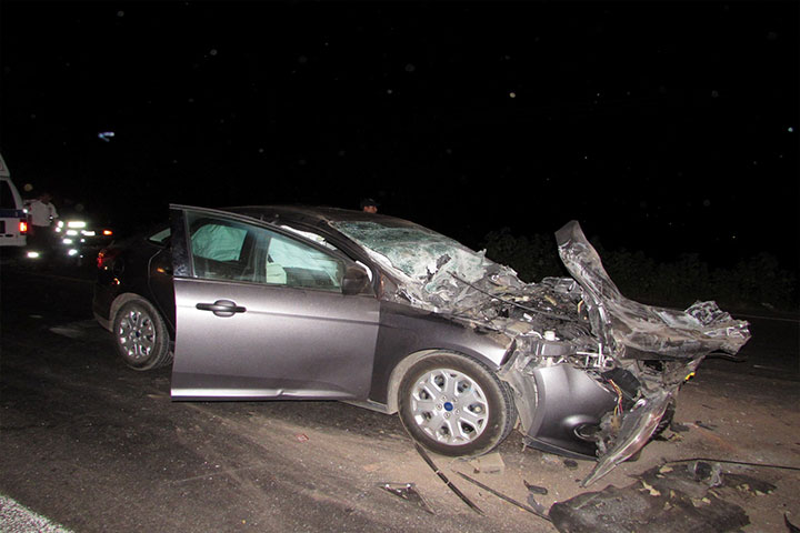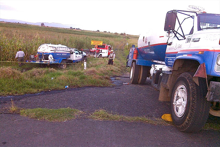 Hasta la sala de urgencias de un hospital de esta ciudad fueron trasladados cuatro personas que resultaron lesionadas, al suscitarse un encontronazo entre una pipa de gas L.P., cargada con 5 mil 500 litros y un auto particular, este último término volcado fuera de la cinta asfáltica, según se conoció en el lugar de los hechos.
