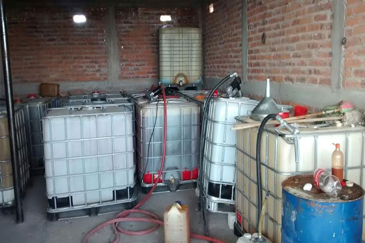 Con el aseguramiento de 34 contenedores que tenían almacenados un total de 19 mil litros de gasolina que fue robada de los ductos de Pemex y la detención de 12 presuntos responsables de estos hechos, la Policía Federal acertó un fuerte golpe a la delincuencia organizada, lo anterior se localizó en una bodega que se ubica en la carretera La Piedad-Zamora.