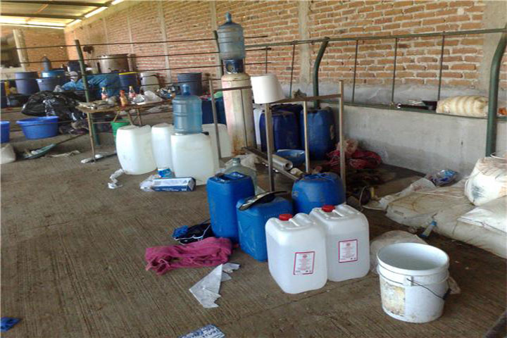 Derivado de una denuncia ciudadana y como parte de las acciones coordinadas que se llevan a cabo para abatir la incidencia delictiva en la entidad, personal de la Procuraduría General de Justicia del Michoacán desmantelaron un laboratorio para la elaboración de metanfetaminas en este municipio.