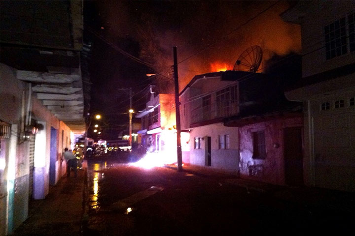 Una humilde vivienda, construida con cemento y láminas de cartón, quedó totalmente destrozada a raíz de un incendio, mismo que al parecer ocurrió a consecuencia de una veladora que los habitantes del inmueble dejaron prendida, explicaron las autoridades policiales.