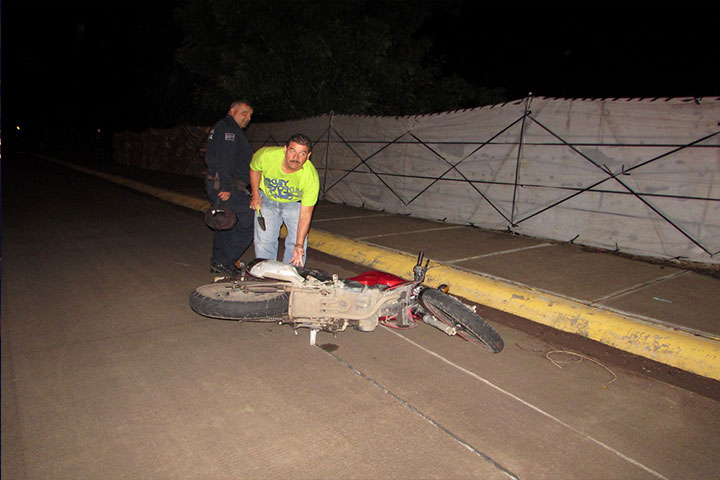 Un motociclista fue trasladado a la sala de urgencias del Hospital Regional, de esta ciudad, después de ser embestido por un vehículo "fantasma"; una acompañante de la víctima resultó ilesa y solamente fue valorada médicamente en el sitio del accidente, trascendió durante el trabajo noticioso.