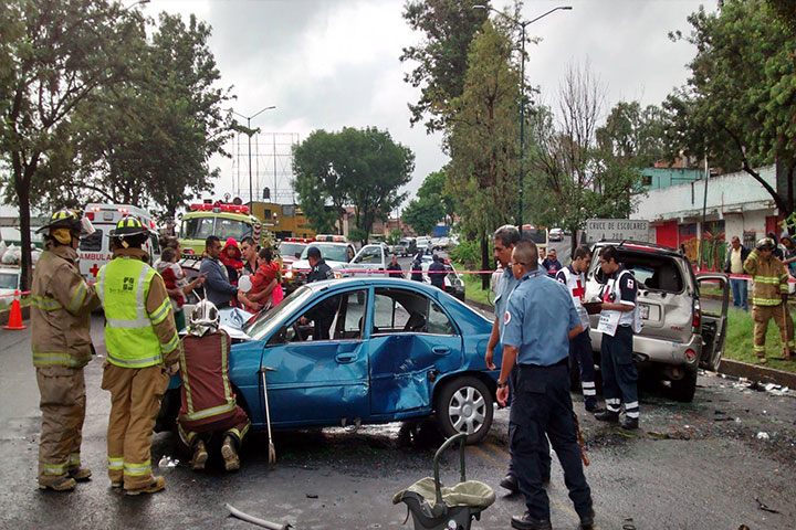 El choque entre tres vehículos sobre la avenida Madero Poniente dejó heridos a dos adultos y tres menores de edad, quienes fueron auxiliados rápidamente por automovilistas, bomberos municipales y estatales.