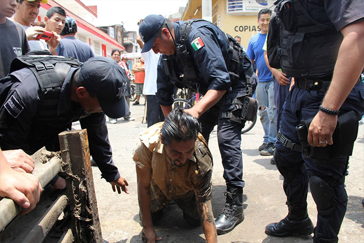 Un sujeto acusado de robar en la tienda Súper Merza, de esta población, fue detenido por los efectivos de la Policía Federal después de una persecución que concluyó en el Río Los Reyes, donde el inculpado se ocultó en una alcantarilla, según datos obtenidos durante la labor noticiosa.