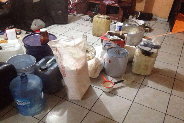 En el marco de la Estrategia Integral de Seguridad que lleva a cabo la Procuraduría General de Justicia, fue desmantelado un inmueble que era utilizado para la elaboración de drogas sintéticas y en el que fueron asegurados aproximadamente 40 kilogramos de metanfetaminas.