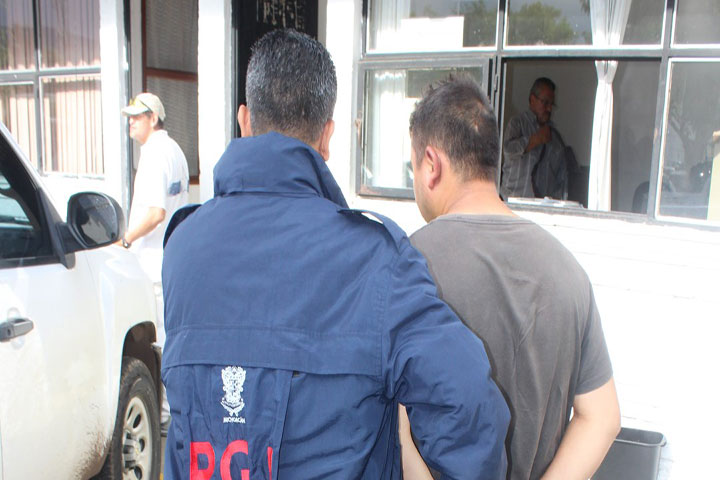 Un expolicía de este municipio de Apatzingán fue detenido en esta ciudad por los policías ministeriales de Michoacán y de Querétaro, esto por su probable responsabilidad en los delitos de secuestro, robo calificado, violación y homicidio, todo ello cometido en tierras queretanas, donde el ahora acusado operaba bajo el mando de un grupo criminal, informó la fiscalía local.