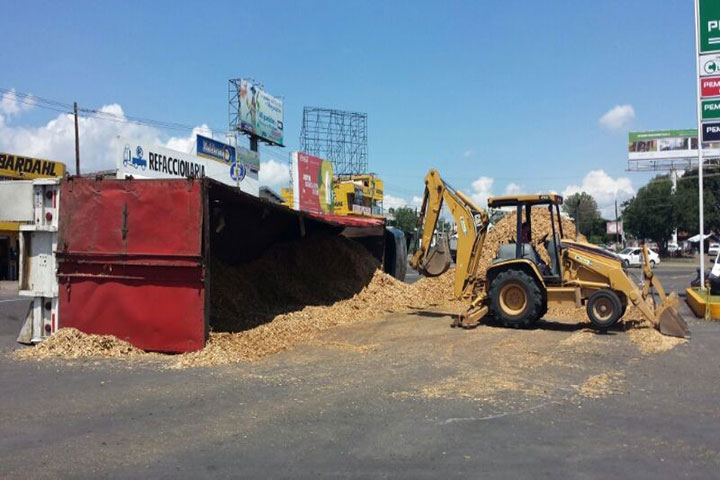 El chofer de un tráiler que iba cargado con varias toneladas de aserrín resultó herido al volcarse dicha unidad; situación que movilizó a los cuerpos de auxilio, pues hubo un derrame de combustible y de aceite, según trascendió durante el trabajo periodístico.