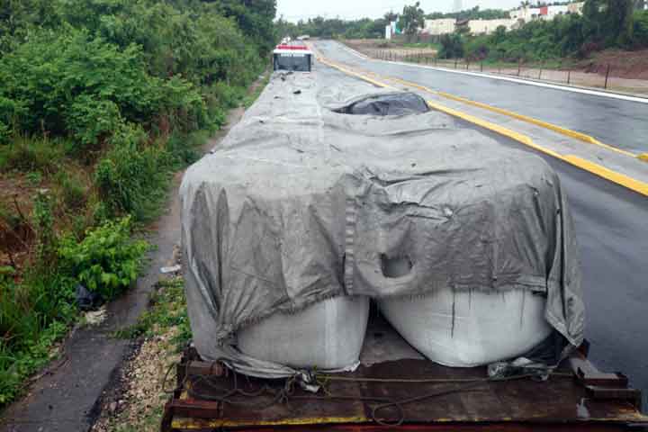 Un tráiler que salió de Guadalajara, Jalisco, rumbo a este puerto, cargado con varias toneladas de escoria de aluminio, provocó alarma entre la población, pues con el agua de lluvia dicho material hizo reacción y generó gases tóxicos en la atmósfera.