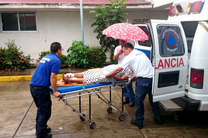 Una mujer de la tercera edad sufrió una fractura expuesta de su tobillo derecho, luego de resbalar por accidente a un costado del Hotel La Loma, en este puerto de Lázaro Cárdenas.
