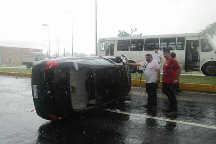 Un joven quedó lesionado luego de que el auto que manejaba volcara, debido al exceso de velocidad al que era tripulado en medio de una fuerte lluvia que azotó esta región, indicó la PolicÃa.