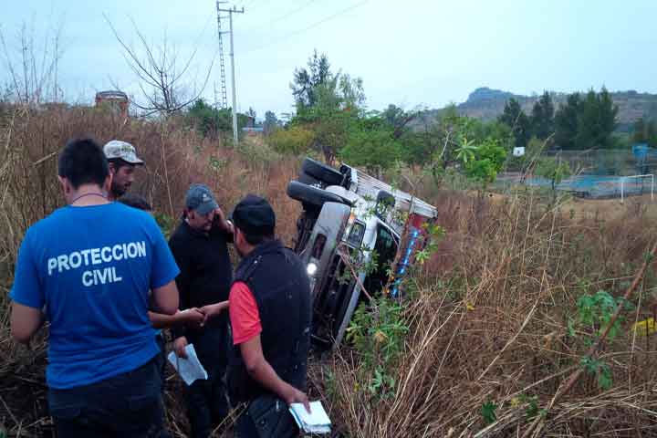 Tres comerciantes originarios de Peribán de Ramos, se salvaron milagrosamente la vida, al volcar la camioneta donde viajaban procedentes de Guadalajara, Jalisco con destino a su lugar de origen, donde cargarían aguacate para comercializarlo en el vecino estado.