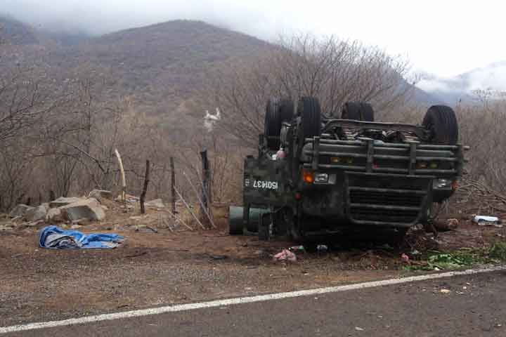NOTICIAS 08/05/2014Camión militar vuelca, dos lesionados