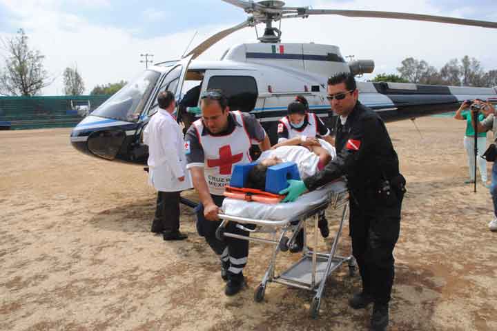 Una mujer fue trasladada en helicóptero desde la ciudad de Los Reyes hasta esta capital, debido a un embarazo de alto riesgo; la aeronave descendió en la Unidad Deportiva "Venustiano Carranza" y de ahí la paciente fue trasladada en una ambulancia al Hospital de la Mujer.