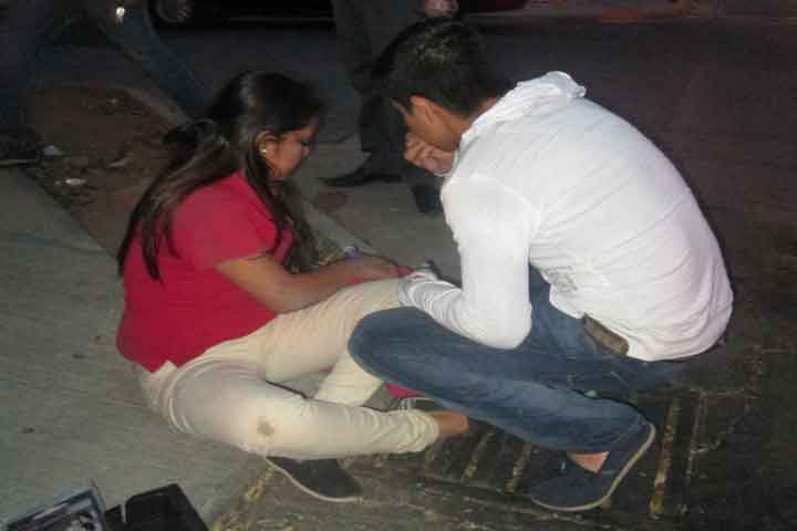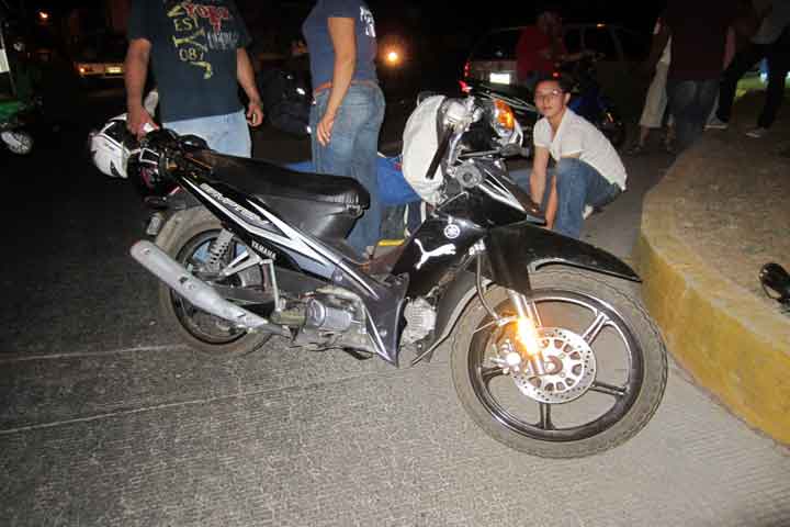 Una joven estudiante del Colegio de Bachilleres de esta localidad y su novio resultaron con golpes y excoriaciones luego de que la motocicleta donde viajaban fuera impactada por un automóvil.