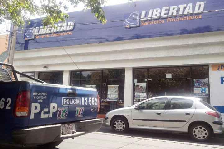 Al medio día de este miércoles al menos dos sujetos armados asaltaron la sucursal bancaria de la caja ahorro Libertad sucursal La Huerta, para posteriormente huir a bordo de una motocicleta.