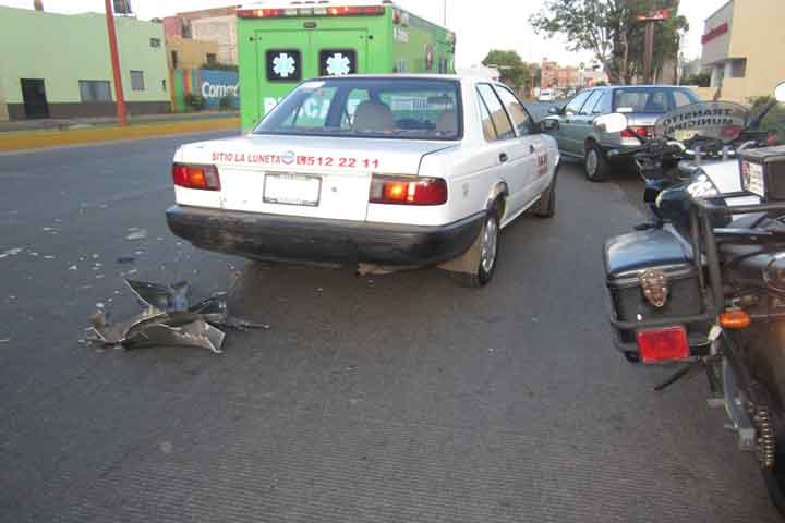 El exceso de velocidad y la falta de precaución provocó que un motociclista se impactara por alcance contra un taxista, quien al parecer frenó bruscamente para bajar a un pasajero, al final el chofer del la unidad de dos llantas quedó lesionado y fue hospitalizado.