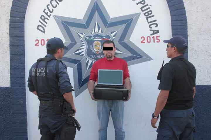 Elementos de la Dirección de Seguridad Pública Municipal (DSPM) de Tarímbaro arrestaron a un sujeto que presuntamente entro a una casa del fraccionamiento