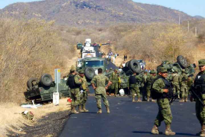NOTICIAS 21/03/201423 lesionados al accidentarse camión militarUn camión de la milicia, que remolcaba otro vehículo y se desplazaba en convoy con otras unidades castrenses, volcó tras realizar una maniobra e impactarse contra un automóvil particular; el accidente dejó tres civiles heridos y 20 soldados lastimados.