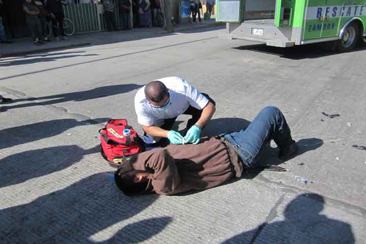 Un paramédico de la agrupación Rescate y Salvamento, asà como un civil, resultaron lesionados al registrarse el choque de frente entre dos motocicletas que circulaban en exceso de velocidad y no hicieron alto precautorio al llegar a una intersección; ambos motociclistas fueron llevados a diferentes hospitales.