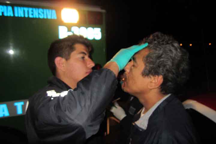 El incidente aconteció a las 03:30 horas de este domingo, casi frente al negocio denominado "Carnes Frías San Patricio", lugar al que acudieron los paramédicos de Rescate y elementos de vialidad.
