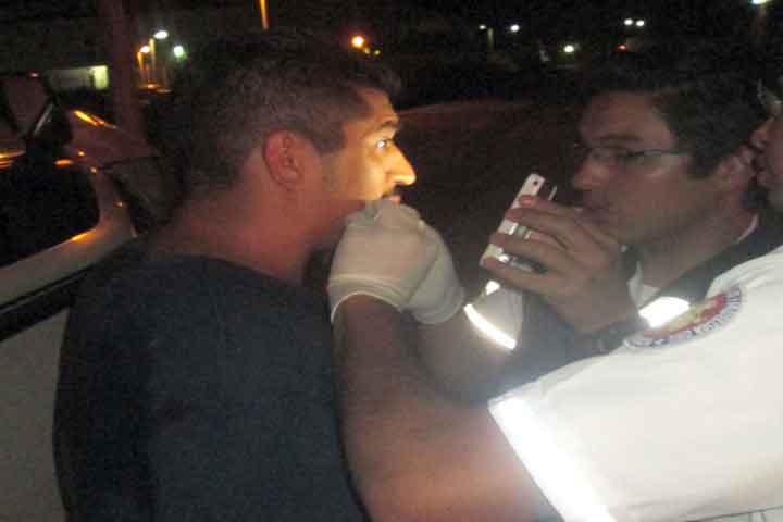 Un alcoholizado empleado de una empresa panificadora sufrió varias heridas al impactar su automóvil contra una banqueta de la calle Labastida y posteriormente quedó volcado.