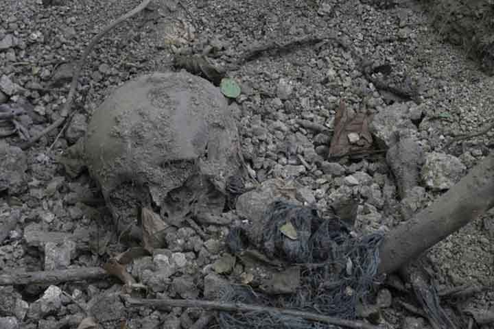 En el cerro de Santa Rosa los elementos de las guardias de autodefensa hallaron, la tarde del pasado domingo, una mandíbula humana; hace algunas semanas en el mismo sitio la Policía Federal (PF) encontró fosas clandestinas y una camioneta junto a una finca donde en años pasados las autoridades localizaron restos óseos y armas ocultas en varios tinacos.