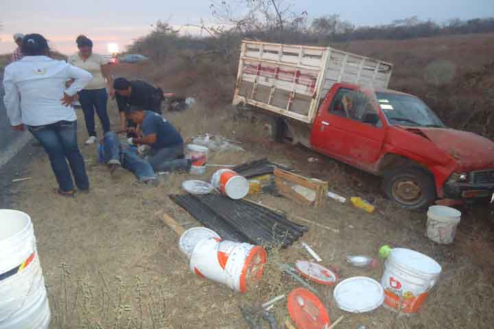 Un hombre resultó seriamente lesionado, tras volcar la camioneta de redilas en la que viajaba, tras lo cual el chofer y el copiloto de dicha unidad se dieron a la fuga, indicó a la Policía el mismo herido.