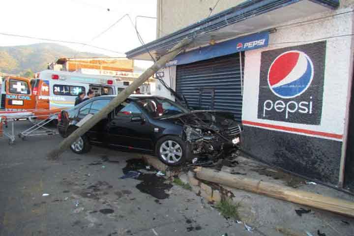 Una señora y dos menores de edad, resultaron lesionados, tras registrarse un fuerte choque entre una camioneta y un automóvil, en una esquina de la colonia Ramón FarÃas. La camioneta fue abandonada cuadras adelante y el auto se proyectó contra un establecimiento comercial.