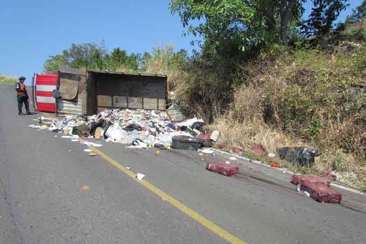 Un herido fue el resultado de la volcadura de un camión recolector de basura; en la carretera Santa-Rosa El Sabino, en este municipio, accidente en el cual tres personas más resultaron ilesas, entre ellas el chofer, refirieron los cuerpos de auxilio.