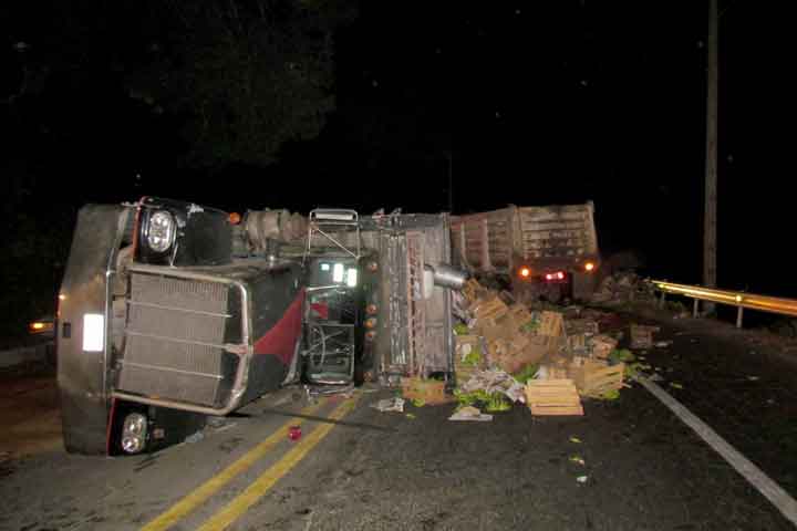 NOTICIAS 23/01/2014Tráiler se queda sin frenos y vuelca