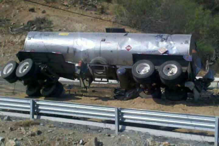La mañana de este sábado una pipa que transportaba combustóleo con rumbo al Puerto de Lázaro Cárdenas volcó sobre la autopista Siglo XXI a la altura de la localidad de Infiernillo, derramando 30 mil litros de carga.