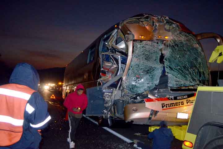 NOTICIAS 19/01/2014Cinco poblanos heridos en autobuzaso Sobre la autopista de Occidente, un autobús de la línea Primera Plus se impactó contra la parte trasera de un tráiler que transportaba mandarinas y cinco pasajeros poblanos resultaron heridos.