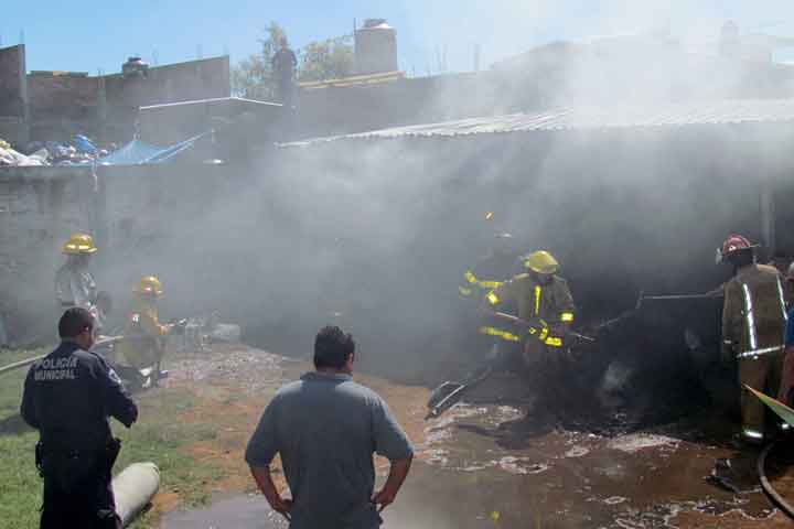 Tres pequeños que se encontraban jugando con cohetitos en el interior de una recámara, ocasionaron que ésta y el resto de la vivienda, se incendiaran; la madre de los menores al percatarse del fuego, corrió hacia ello y logró ponerlos a salvo. La casa y una camioneta quedaron convertidos en chatarra.