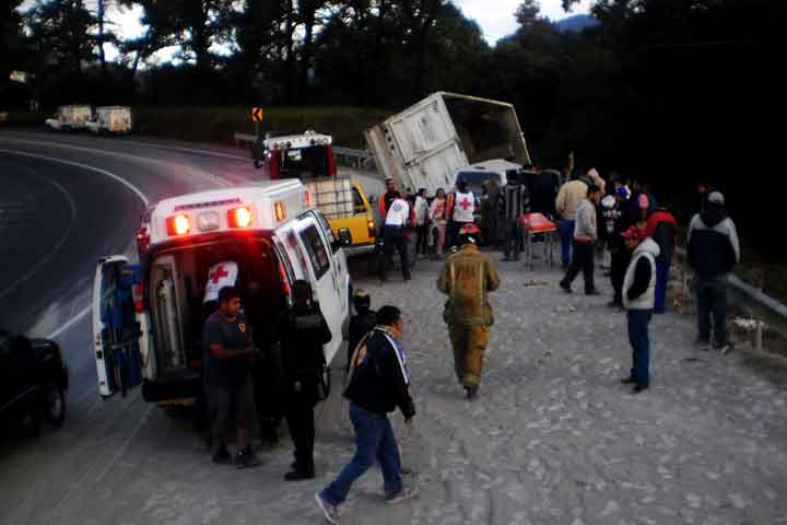 Cinco personas, entre ellas un menor de edad, resultaron lesionados de consideración, luego de que un camión tipo tráiler de plataforma que transportaba varias toneladas de cemento, se volcó en la llamada Curva del Diablo, sobre la carretera a Paracho, pero a su paso se llevó un camión recolector de basura, una camioneta pick up y finalmente, a punto estuvo de aplastar un auto VW.