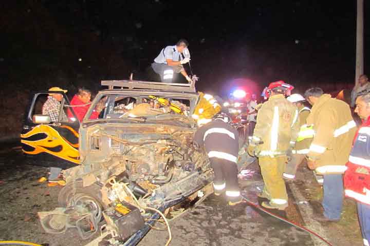 Un camión tipo tráiler que circulaba en evidente exceso de velocidad, se impactó de frente contra una camioneta cargada de papayas, la madrugada de este día, cerca de Tinaja Verde, en la carretera libre a Lombardía; sus dos ocupantes quedaron prensados. En su huida, el tráiler chocó en dos ocasiones más hasta que fue detenido por la policía.