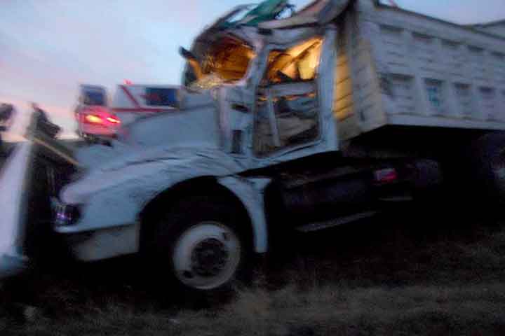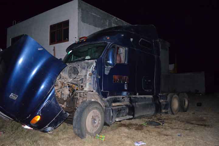 Tres pasajeros de un camión de carga resultaron con heridas de consideración en varias partes de su cuerpo, al impactar su unidad contra un tráiler, cuyo chofer se dio a la fuga con todo y su unidad, según fuentes policiales.