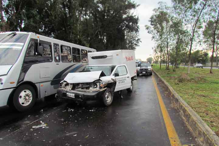 El choque de un vehÃculo del transporte público contra una camioneta particular dejó el saldo de seis pasajeros lesionados sobre la avenida Las Palmas de la tenencia de Guacamayas, perteneciente este municipio de Lázaro Cárdenas.