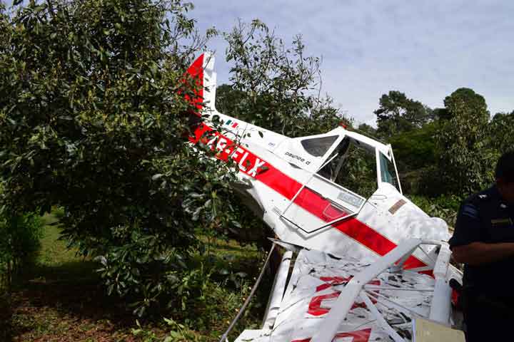Sobre un campo de zarzamora de San Ángel Zurumucapio repentinamente se desplomó una avioneta fumigadora tras una falla mecánica y el piloto afortunadamente resultó con golpes leves.