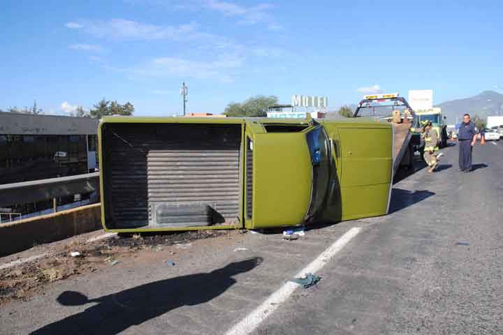 De milagro salvan la vida empleados de una empresa de calentadores luego de que la camioneta en que viajaban con dirección a Guadalajara, sobre la autopista de Occidente, diera varias volteretas y quedara destrozada.