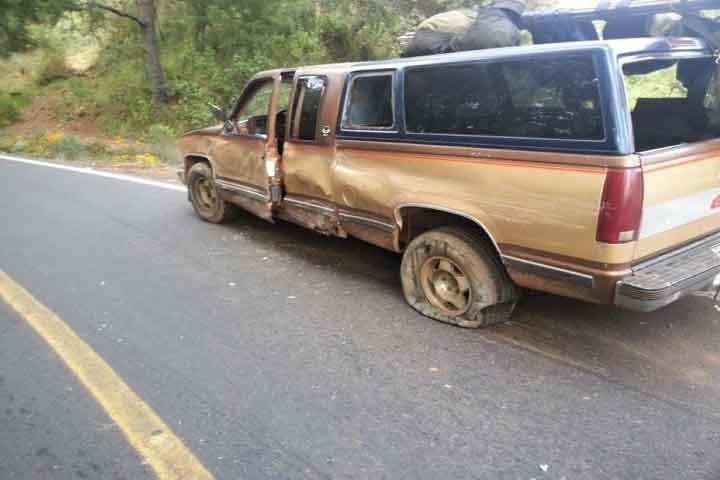 Dos cortadores de aguacate que viajaban a bordo de una camioneta, resultaron lesionados luego de que la unidad fue impactada por un tracto camión en uno de sus costados, en una curva de la carretera estatal, cerca de San Lorenzo, en esta municipalidad.