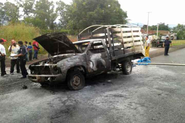 Una camioneta fue reducida a cenizas en la carretera federal 15 México-Nogales, en su tramo Zamora-Tangancícuaro, a la altura de la comunidad de Chaparaco, perteneciente a Zamora.