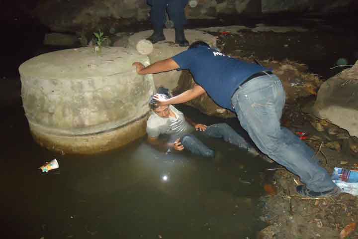 Una persona que bajo los influjos del alcohol conducía una bicicleta la noche de ayer, cayó de lo alto de un puente de una altura de más de 5 metros, a las aguas negras, resultando lesionado de gravedad.