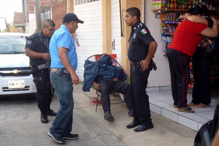 NOTICIAS 03/11/2013Lo asesinan frente a su negocioDe cuatro balazos en tórax y cabeza, fue ultimada una persona originaria de la tierra caliente michoacana, cuando se encontraba sentado en una silla frente a la tienda de abarrotes de su propiedad, en la colonia México, cerca del aeropuerto local; los agresores fueron dos personas que llegaron y huyeron a bordo de una motoneta.