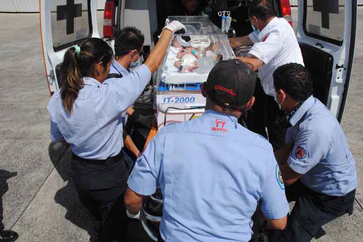 Una niña que presenta un cuadro respiratorio de la formación de agua en los pulmones y que se encontraba muy grave, fue trasladada del Hospital Regional en Acámbaro, Guanajuato a esta capital para ser internada en el Hospital Infantil.