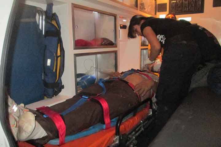 Varias heridas sufrió un motociclista tras impactarse en la parte trasera de una combi. El lesionado fue auxiliado por rescatistas de la Cruz Roja (CR) e internado en el Hospital Regional.