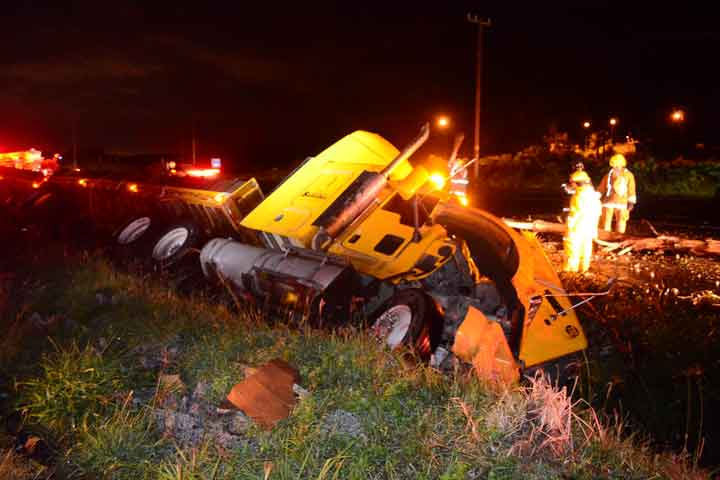 NOTICIAS 30/09/2013Vuelca tráiler cargado con material para construcción