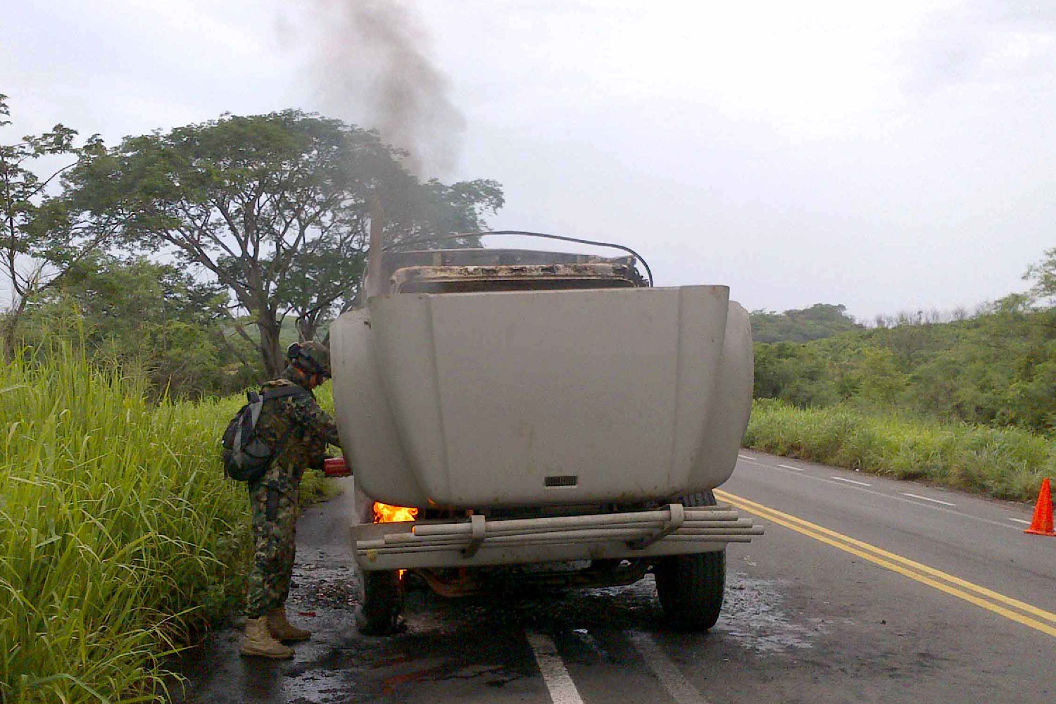 NOTICIAS 12/08/2013Se incendia camión de la marinaUn camión de la Marina se incendió repentinamente debido a una falla mecánica, en la carretera Zihuatanejo-Lázaro Cárdenas, mismo que escoltaba a un tráiler de dicha institución. Por fortuna la situación no pasó a mayores.