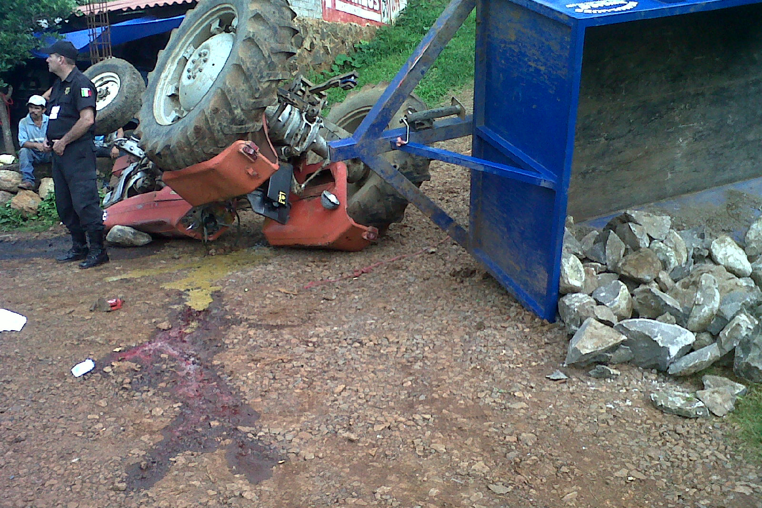 El tractor agrícola era conducido por Rubén Ponce Flores, de 22 años de edad, es un Massey Ferguson, color rojo, con remolque azul y cargado de piedras, al tomar una bajada de más de 60 met... Ver más...