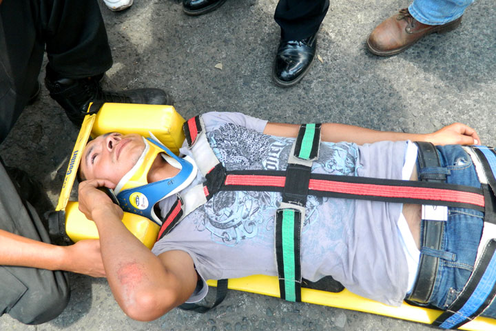 Un joven resultó gravemente lesionado, luego de que chocara la motocicleta en la que viajaba, sobre la calle Manuel Pérez Coronado, lugar donde fue atendido por paramédicos de A.M.R.U, quienes indicaron que debía ser trasladado a un nosocomio.